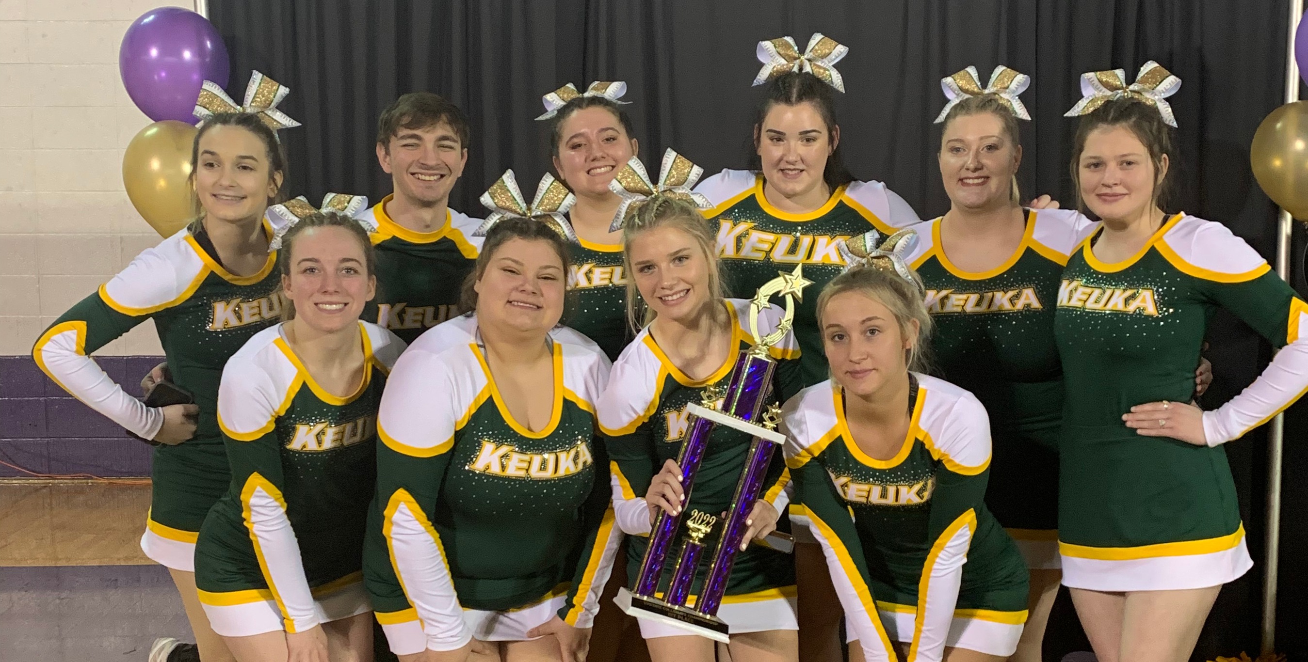 KEUKA PARK, N.Y. -- Keuka College Cheer rounded out it's competitive season with a win at the SHOUT! I Love New York Championships in Syracuse, NY, on Saturday, March 18. The Wolves finished with a score of 67.17, narrowly defeated the Alfred University Saxons, who finished with a score of 66. The scores were close in many categories, but the Wolves pulled ahead in the building categories of partner stunts and pyramids.